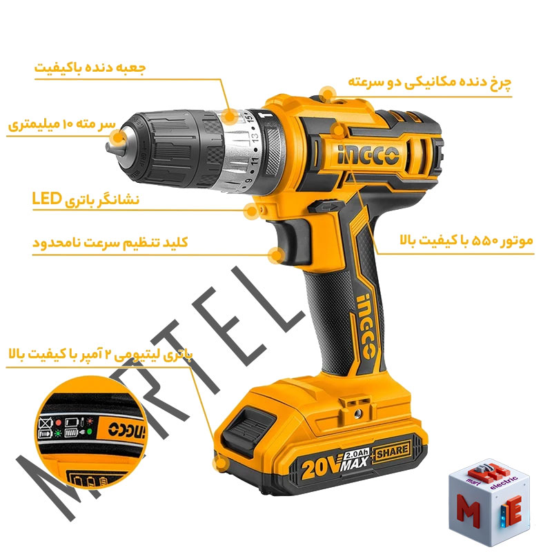 • دارای 2 عدد باتری 20 ولت 2 آمپر