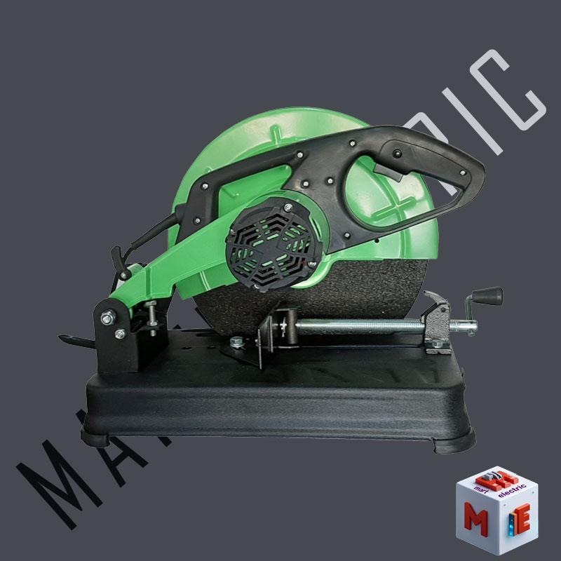 اقلام همراه دارای قفل کلید روشن و خاموش دستگاه دارای صفحه 355 میلی متری دارای کلید ضد غبار قابلیت عملکرد سریع و آسان برای برش های متوالی دارای گیربکس صنعتی مناسب برای برش کاری های مداوم و طولانی مدت دارای گونیای قابل تنظیم 45 درجه بهمراه آچار ، یک جفت زغال اضافه